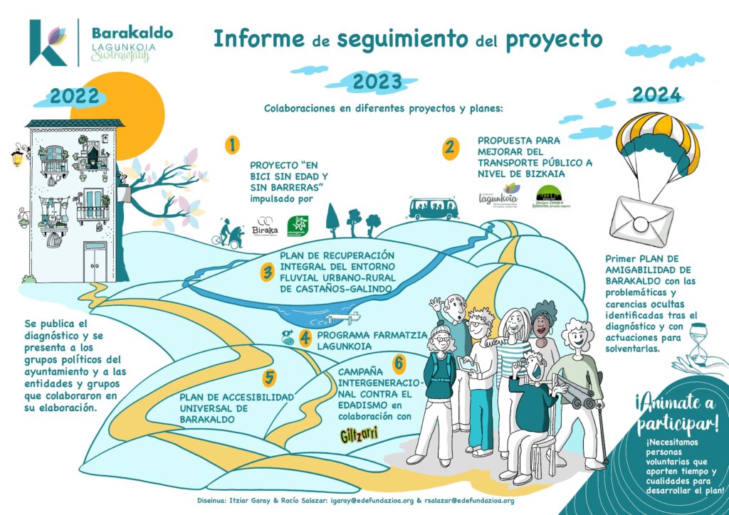 El proyecto busca trabajar diferentes ámbitos de Barakaldo identificando los puntos “amigables” con las personas mayores (elementos positivos), detectando las barreras y los problemas que encuentran en su día a día (elementos negativos) y planteando mejoras . BARAKALDO LAGUNKOIA trabaja por un municipio más amigable donde sea posible vivir sin obstáculos físicos ni barreras entre sus vecinos y vecinas, los entornos de convivencia toman un papel esencial en el proyecto. Y todo ello desde un proceso de participación ciudadana donde las personas mayores del municipio serán las protagonistas como generadoras de bienestar.